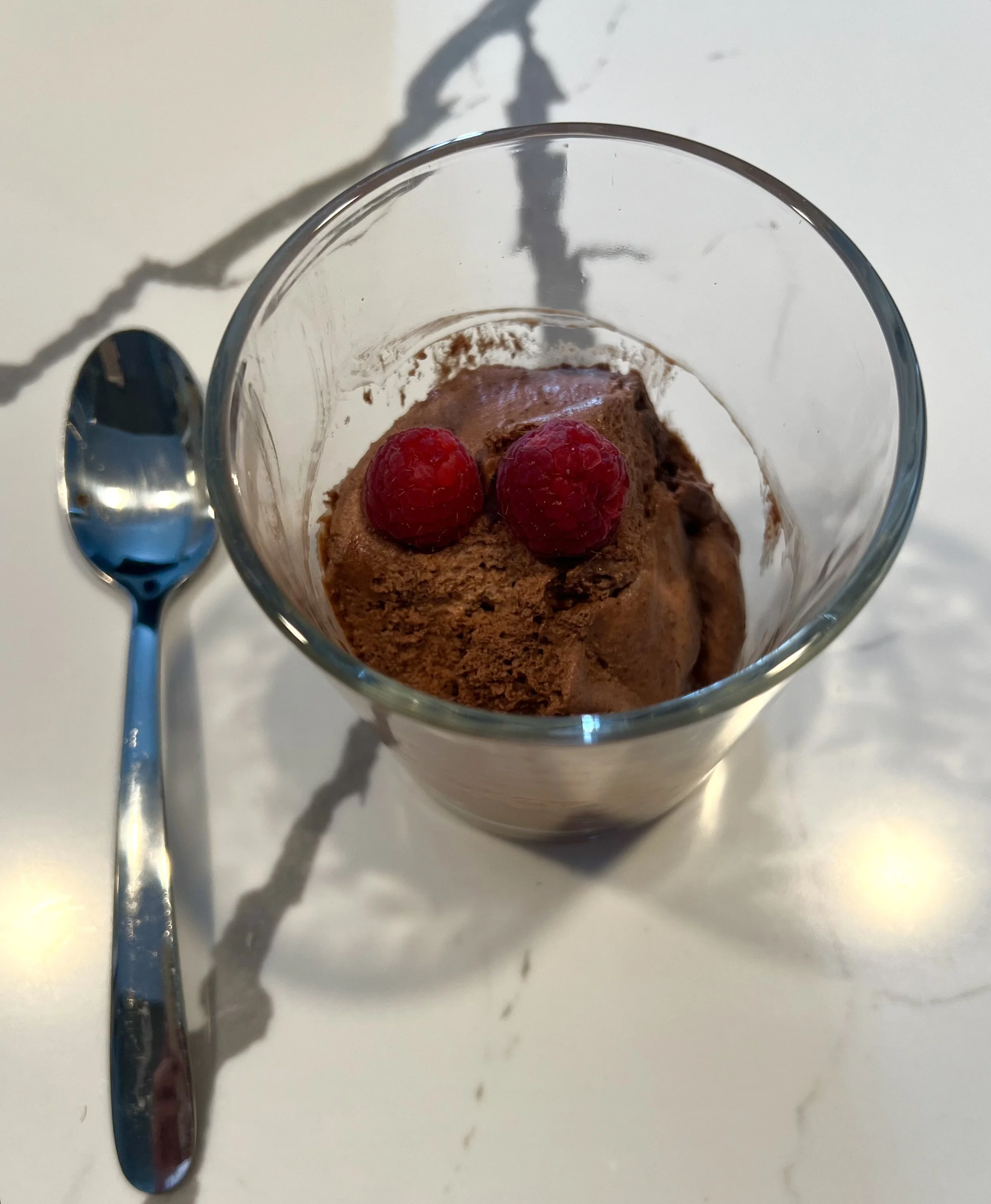 Spoon a few dollops into a short glass and garnish with raspberries. Serve and enjoy!